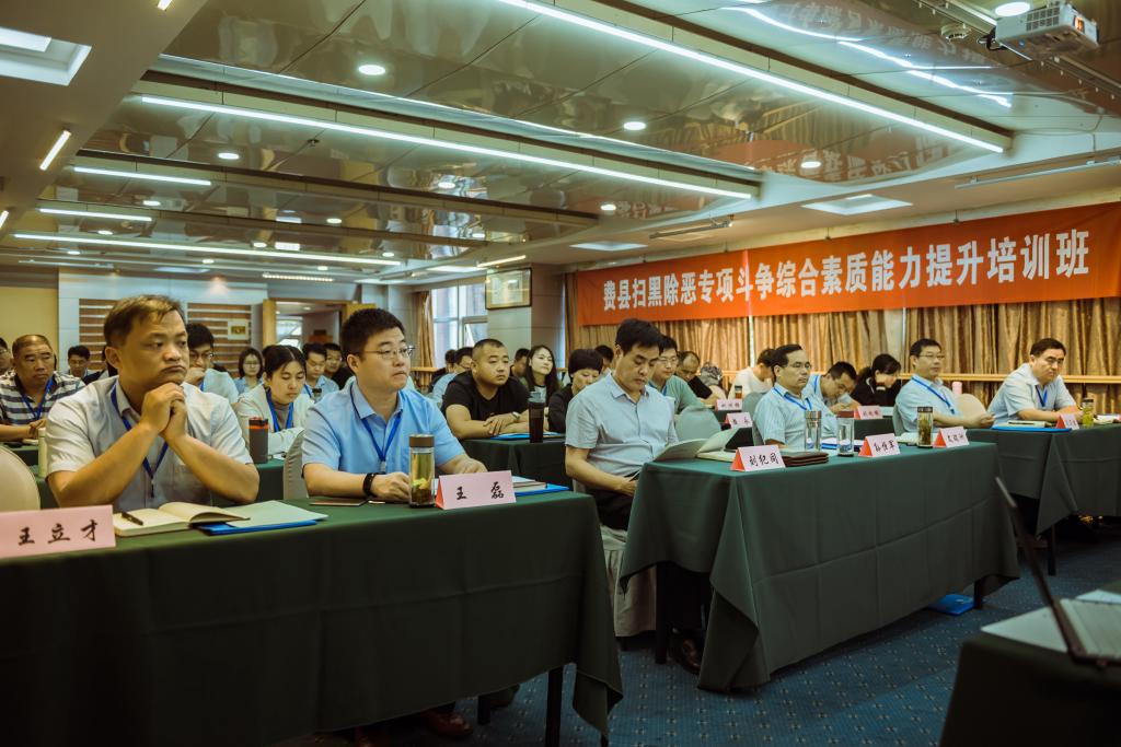 此次培训班聘请了来自青岛海军潜艇学院、中共青岛市委党校、山东警察学院、青岛市公安局的知名专家和教官,进行《中国周边安全形势研究解析》《改革视角下的扫黑除恶》《建设良好的社会治安防控体系》《扫黑除恶与社会治安综合治理的结合实践》等七大板块内容,并结合到青岛市崂山区政法委等地的现场教学,学习城市社区网格化建设、群众安全感满意度做法,学习政法、综治、扫黑除恶工作先进经验。希望学员们在未来一周的学习中,能加深理解扫黑除恶工作的重大意义,提高对扫黑除恶专项斗争工作的深刻认识,对推动扫黑除恶专项斗争稳定有序开展起到积极地促进作用。(撰稿:于跃洋 审核:施国盘)