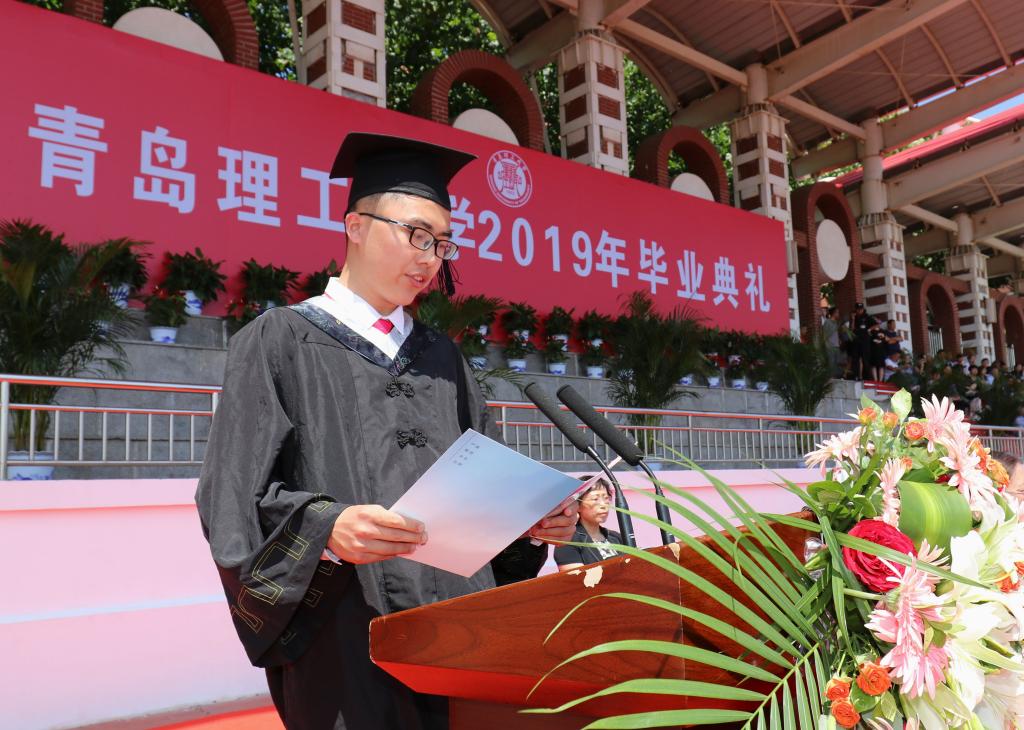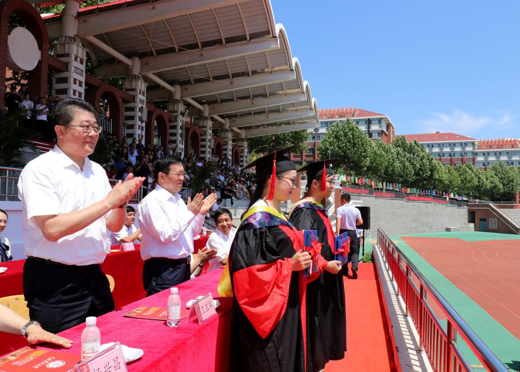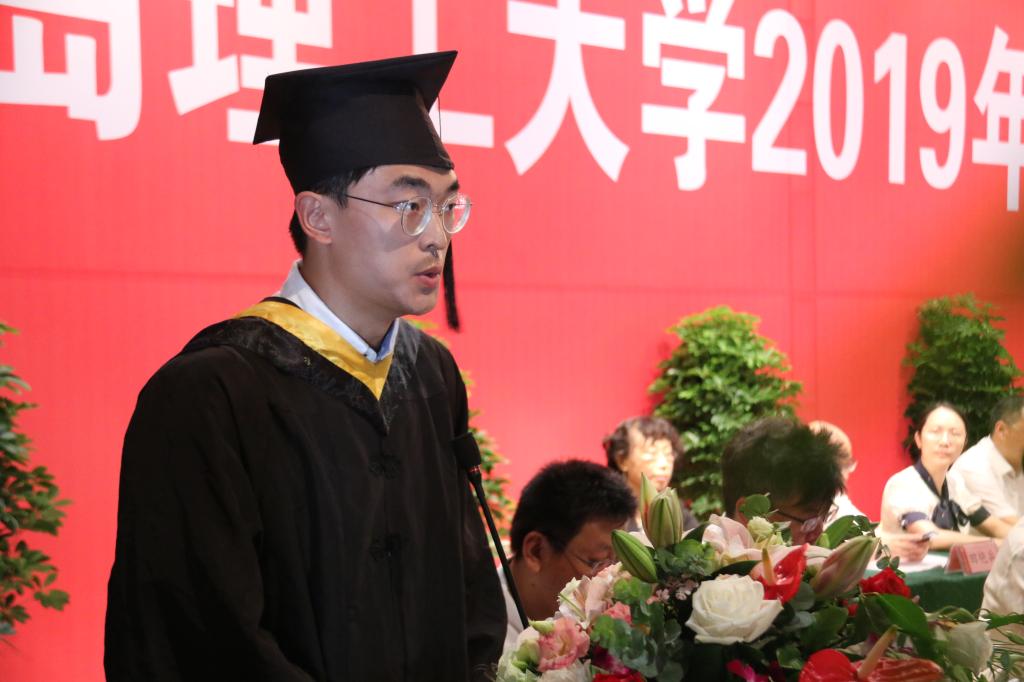谭秀森最后指出,今年是五四运动100周年,是新中国成立70周年,也是同学们精彩人生的新起点。在同学们即将离开母校,踏上新的人生征程之际,提出四点希望共勉:一是希望同学们志存高远,做一个有益于国家、有益于社会、有益于人民的人。秉承“百折不挠、刚毅厚重、勇承重载”的理工精神,根植祖国沃土、坚定理想信念,与人民共命运,与时代同步伐,以青春之我,创造青春之中国。二是希望同学们砥砺品格,做一个有责任有担当的人。面对纷繁复杂的社会,希望同学们坚守初心,恪守正道,明辨是非、严格自律。要时刻牢记肩负的责任,做到对家庭,对工作,对社会尽职尽责,担当作为,做一个家庭靠得住、单位用得上、朋友信得过、社会有贡献的人。三是希望同学们不断学习,做一个有思想有智慧的人。走向社会,身在工作岗位,希望同学们继续保持学习和独立思考的习惯。在书本里学、在实践中学,向前辈学、向同事学,还要向网络学,与时俱进地提升新思想、升级新知识、掌握新方法,增强新本领,用智慧、靠能力,保证工作质量,展示工作业绩,铺就职业发展的成功之路。四是希望同学们脚踏实地,做一个踏实做人、踏实做事的人。每个青年人都有梦想、有追求,这是青年人成长的动力源、助推器,但凡事要一步一步来,一件一件做。希望你们“不驰于空想,不骛于虚声,而惟以求真的态度作踏实的工夫”,脚踏实地、持之以恒、务实工作,才能把人生的每一步都走稳走好走出精彩。