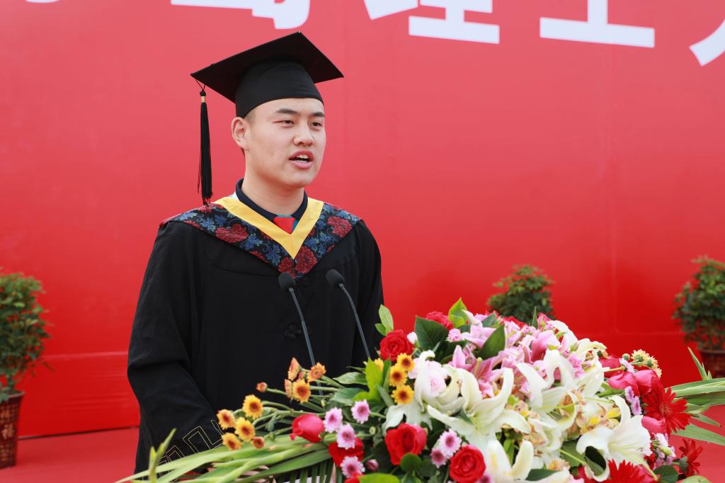 建筑与城乡规划学院建学141班张子涵、商学院国商152班相志伟、机械与电子工程系机械设计制造及其自动化专业152班康清川作为学生代表发言,他们说,四年理工行,一生理工情。太多深情镌刻的记忆,太多难以割舍的情怀,都将凝聚成为他们人生旅途弥足珍贵的牵挂和陪伴。无论走到哪里,身在何方,都将做母校靓丽的名片,为母校建设发展贡献智慧和力量。(撰稿:王琦 摄影:赵方强、王磊、任衍珍、王琦 审核:王雄)