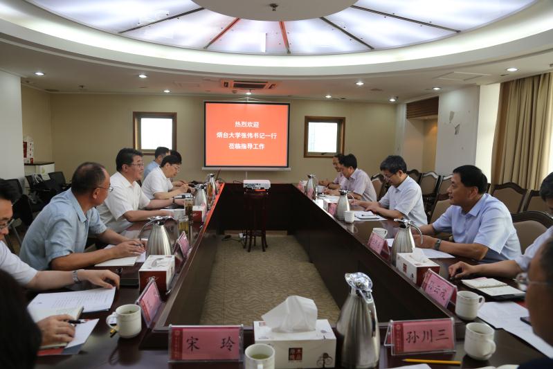 6月26日下午,烟台大学党委书记张伟率领该校党委副书记张殿臣,党委常委、纪委书记周胜良以及学校办公室、党委宣传部、党委教师工作部等部门负责人来伟德官网调研。校党委书记王亚军、校长谭秀森,党委常委、纪委书记尹东峰与张伟书记一行见面交流,党委宣传部、组织部、统战部、党委办公室、党委教师工作部等部门负责人参加调研座谈。