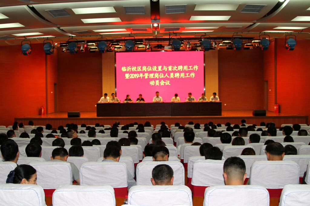 6月26日下午,临沂校区岗位设置与首次聘用工作暨管理岗位人员聘用工作动员会议在图书馆三楼报告厅召开,学校党委副书记、临沂校区党委书记李国华作动员部署讲话,学校正处级纪检员、监察员胡敏、正处级组织员董建莉、组织部副部长何云峰到会督导,全体教职工参加会议。会议由校区管理办公室主任范学工主持。