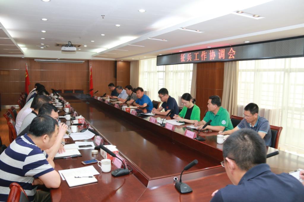 6月26日下午,学校在市北校区图书科技楼1908会议室召开2019年度征兵工作协调会议。党委常委、副校长王伟主持会议并讲话。国防教育及征兵工作领导小组成员参加会议。