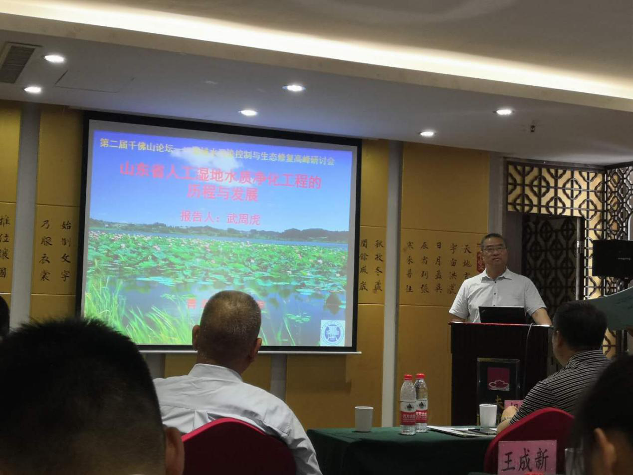 6月29日,由山东环境科学学会主办,山东省科学院等单位承办的“第二届千佛山论坛——流域水污染控制与生态修复高峰研讨会”在济南举行。会议邀请国内该领域的16位知名专家学者发表主题演讲。伟德官网山东省有突出贡献的中青年专家、环境与市政工程学院学术委员会主任、博士生导师武周虎教授,应邀作了题为《山东省人工湿地水质净化工程发展历程》的报告,武周虎教授的研究生马景、李琪一同参加研讨会。