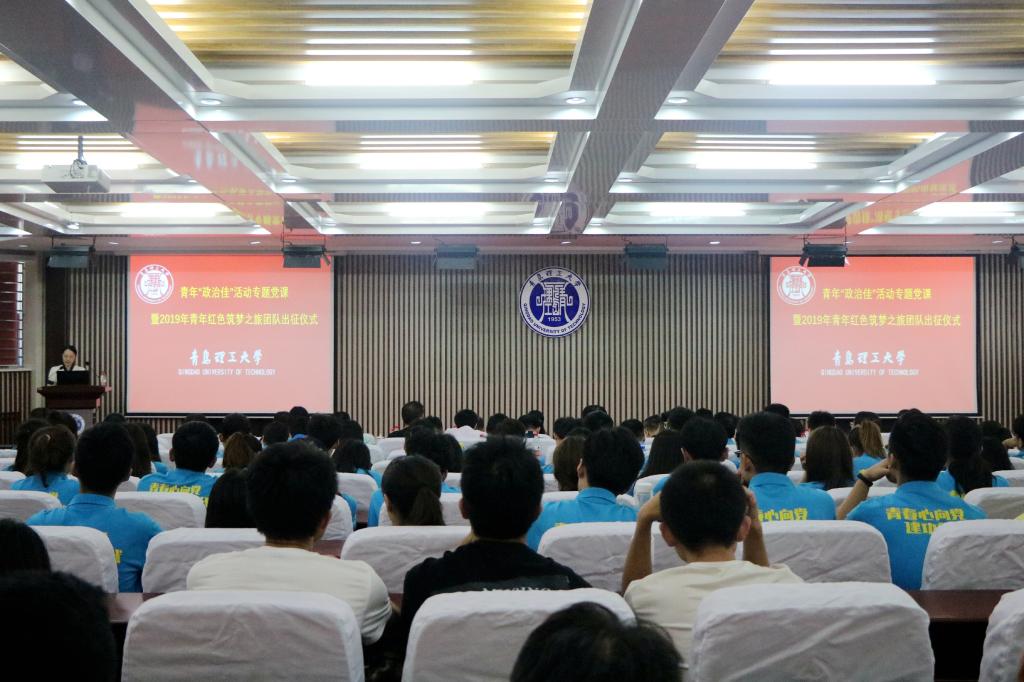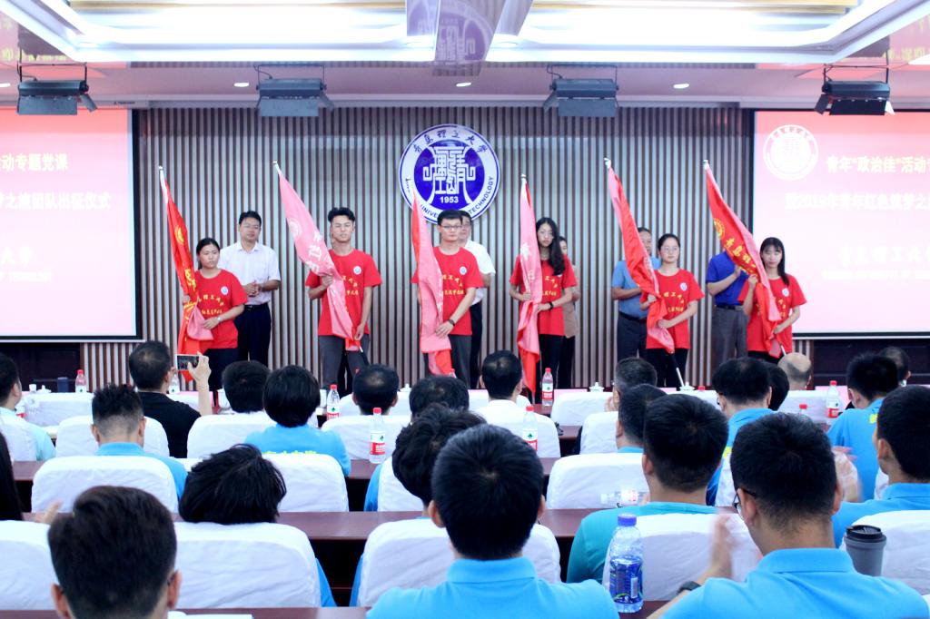 7月10日下午,伟德国际1946bv官网在嘉陵江路校区一楼西报告厅隆重举行青年“政治佳”活动专题党课暨2019年“青年红色筑梦之旅”团队出征仪式。