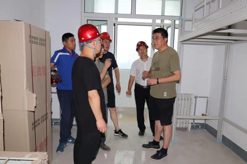 王亚军先后深入北区学生公寓和东部生活区项目现场,实地查看了项目建设进展情况。在北区学生公寓项目现场,王亚军沿室外场区仔细查看了场地平整、地面铺装、管网道路与校园围墙建设情况,深入公寓内部查看了室内保洁、浴室洗浴设备以及宿舍床柜、晾衣杆等家具配套安装进展情况。