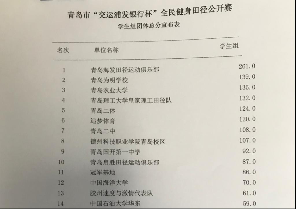 9月8日至10日,青岛市“交运 · 浦发银行杯”全民健身田径公开赛在天泰体育场举行。伟德官网18名学生运动员报名参加了13个项目的角逐,最终获得7银6铜,团体总分第四名的优异成绩。