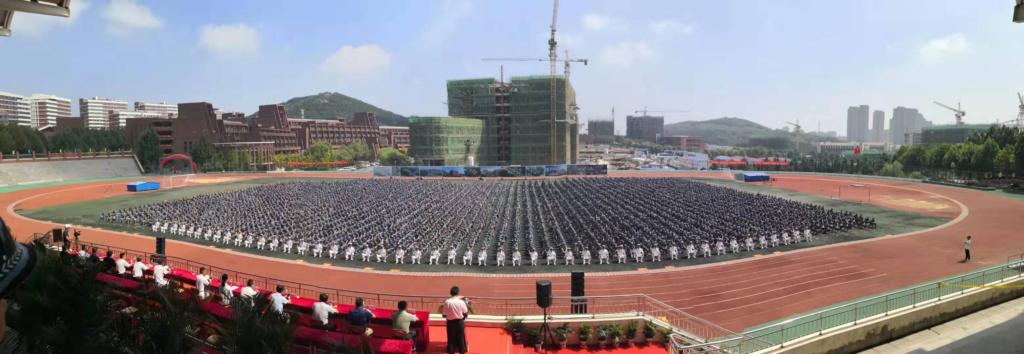 作为新生入学的第一课,市北校区、黄岛校区、临沂校区参加军训的同学共计8300名,承训教官96名,军训为期14天,军训基本内容包括:队列训练、内务整理、野外拉练、武器知识、战术格斗、国防教育、交通安全教育及消防演练等。(撰稿:王栋栋;审核:钱均)