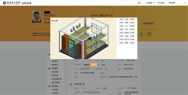 整套系统由学校科技发展集团自主研发。三维可视化系统通过BIM+GIS+AI的技术搭建了一个真实的三维数字校园,新生可以随意在校园里漫游,看看学校教学楼宿舍的分布,超市在哪里,食堂在哪里。通过这套系统,能让新生在“未到校之前就能通过三维实景模型全面了解学校的全貌”,可以大大降低新生来校之后的陌生感,提高新生对学校的亲和度。在学生宿舍的三维立体模型里,可旋转模型从不同方向和角度看宿舍内部摆设和布局,并可以得知自己所住床的位置,方便新生直观了解宿舍情况。