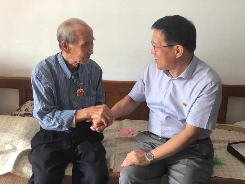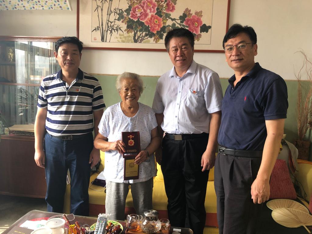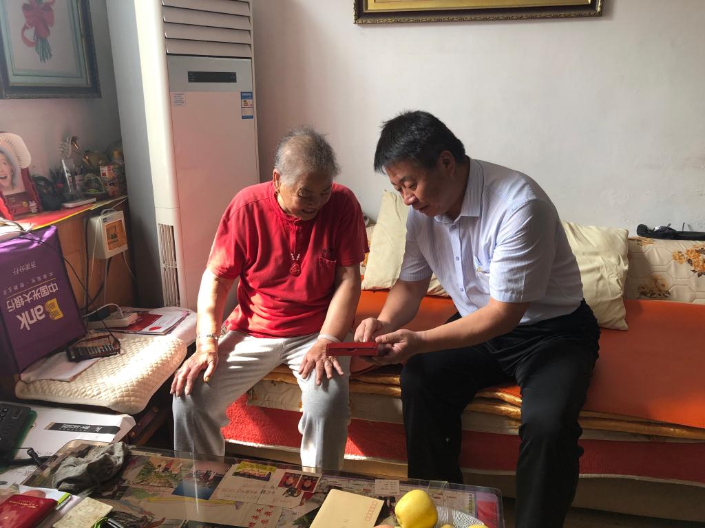 在离休干部董翠云、张树华的家里,李国华副书记讲到,老同志在不同历史时期为党的事业、国家的建设和学校的发展做出了卓越的贡献,党和国家不会忘记,学校不会忘记。李书记关切地询问两位老人的身体状况,了解她们的生活需求,叮嘱她们颐养天年,祝福老人健康长寿。离休干部董翠云深情地说,学校现在还比较困难,是发展的关键时期,感谢学校一直以来对离休干部的牵挂和照顾。离休干部张树华说,“这个纪念章很有纪念意义,很珍贵,要作为传家宝传承下去”。面对党、国家和学校的关怀,两位老人感动地留下泪水。