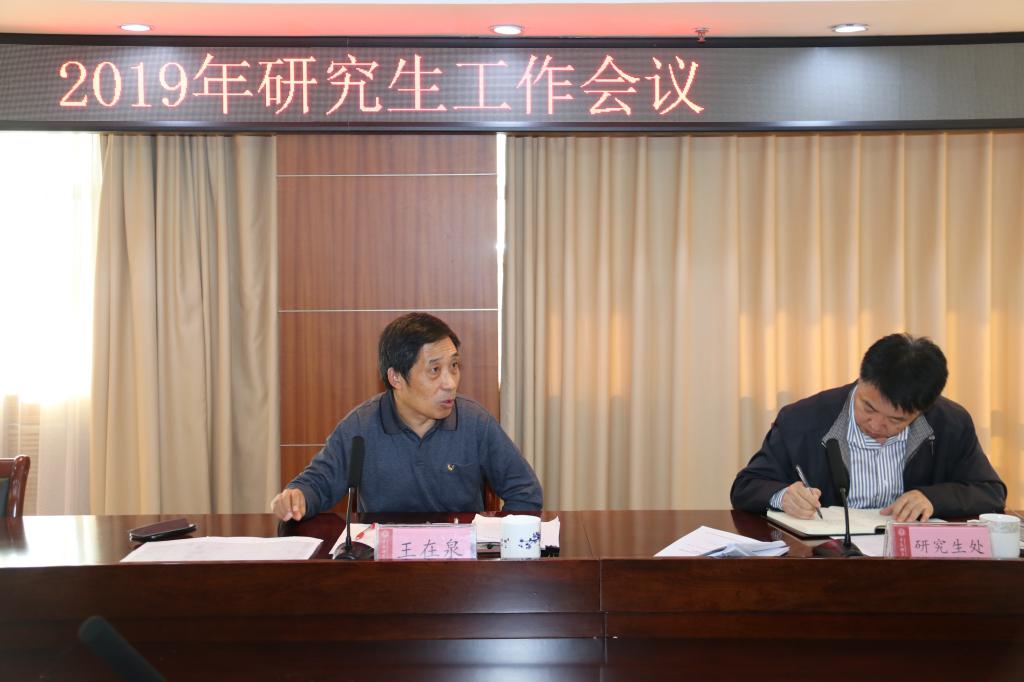 针对抓好落实研究生招生工作和提高研究生培养质量,王在泉提出以下几点要求:一是提高研究生招生质量,各学院要创新宣传手段,利用新媒体技术与网络通讯技术,加大招生宣传力度,提高第一志愿报考率;二是严格执行自命题办法,做好命题保密工作,提高命题质量,降低试题与往年的重复率。为切实落实考试招生工作主体责任,学校于2019年上半年成立了招生考试领导小组,负责学校所有考务工作,各环节责任到人,做到“谁签字、谁负责”。三是提高研究生论文质量,严把学术诚信审核关,加大对学术不端、学位论文作假行为的查处力度,对学术不端行为坚决露头即查、一查到底、有责必究、绝不姑息,实现“零容忍”;四是各学院要严格执行制度要求,不断完善制度体系,严格规范过程细节管理,做到有问题立即整改,按照流程及办法,保证论文答辩的规范性;五是建立健全研究生培养机制,制定合理详细的研究生培养方案,贯穿于教学管理全过程,优化教学模式,提高研究生导师教学管理水平,以此保证学生论文质量;六是重视研究生教学督导,将督导工作纳入研究生导师工作量考核中;七是创新博士和硕士研究生招生办法,如将各学院硕士、博士一志愿招生数量和质量体现在招生指标分配,制定切实可行的规章制度汇编,让研究生工作有章可循;八是做好研究生推免和奖学金评定工作,明确各学院指标分配,确保学习成绩好、综合素质高、有专业特长的学生获得推免机会。要求各学院应从本学院各学科(专业)学位授权点建设和研究生培养实际情况出发,制定本学院国家奖学金评审工作实施方案和科学合理的评价指标体系,确保奖学金评选工作有利于激励研究生“学习成绩优异,科研能力显著,发展潜力突出”;九是健全各项规章制度,严格规范研究生招生工作程序,使研究生招生和培养工作实现规范化、制度化管理。