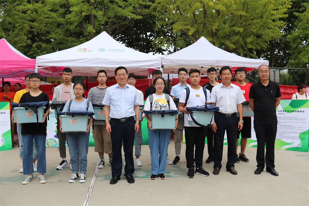 困难新生资助措施多样。在迎新现场,学校领导在相关部门负责人的陪同下,分别深入市北、黄岛、临沂校区,与贫困新生及其家长亲切交流,发放爱心大礼包,勉励他们努力学习,安心生活,让家庭经济困难学生在入校的第一时刻就切实感受到学校助学政策的温暖。在发放资助物品及开展宣传工作时,注重保护学生的尊严和隐私,做好家庭经济困难新生心理辅导工作,采用合理方式引导他们正确面对困难,更快适应校园生活。2019年,发放爱心大礼包328个,向916名贫困学生发放临时生活补助45.8万元,向20名特别贫困新生发放“新生助学金”4万元。在发放资助资金及物品时,注重保护学生隐私,让学生在没有心理压力和心理包袱的状态下接受资助。