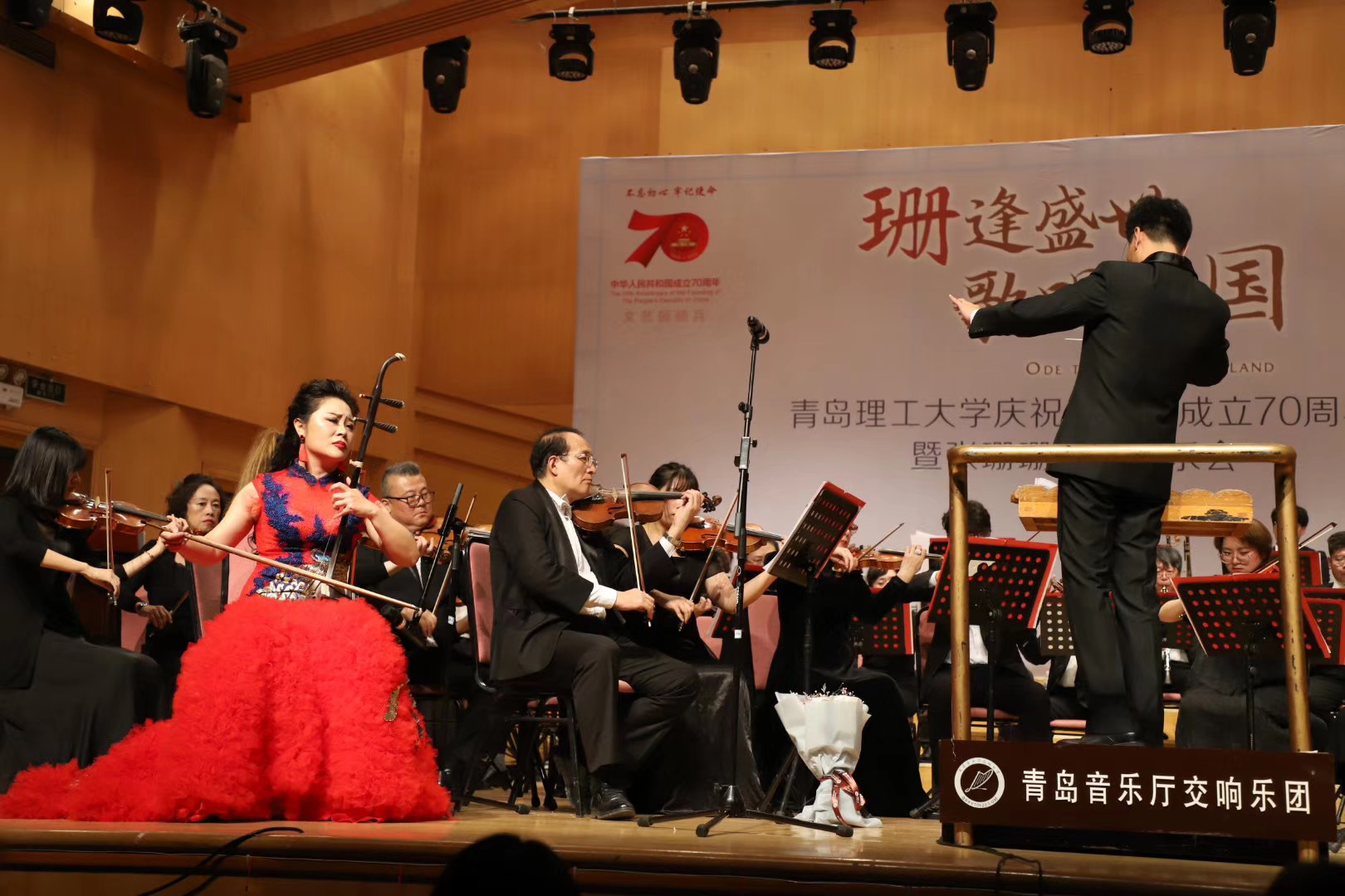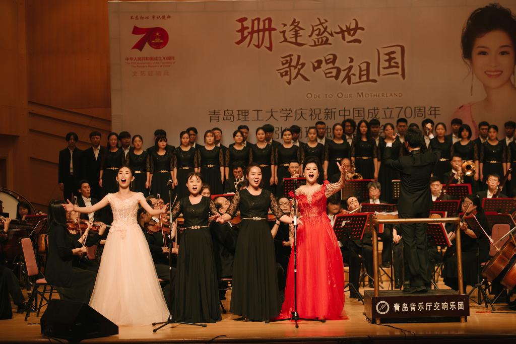 歌声飘荡,礼赞盛世新中国;初心回响,讴歌美好新时代。学校“不忘初心、牢记使命”主题教育开展期间,10月23日晚,伟德国际1946bv官网庆祝新中国成立70周年暨张珊珊独唱音乐会在青岛市音乐厅举办。