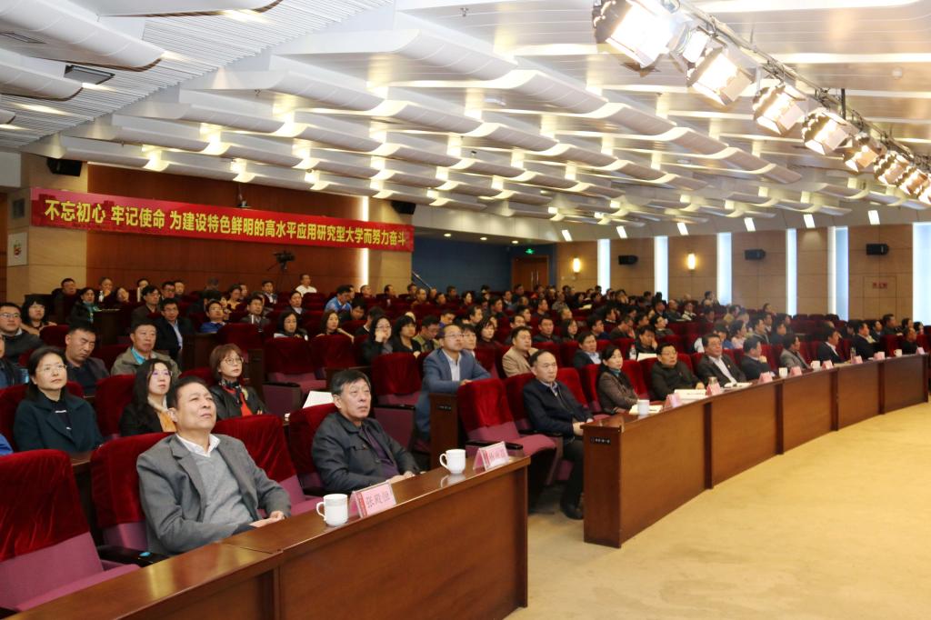 李国华最后指出,全校各级党组织要把学习郭永怀同志先进事迹与开展“不忘初心、牢记使命”主题教育紧密结合起来,以此次报告会为契机,迅速掀起学习、宣传郭永怀同志等老一辈科学家的热潮,从“两弹一星”精神中汲取奋进力量,践行为党育人,为国育才的初心和使命,推向主题教育不断深入开展,推进学校高质量发展再上新台阶;广大党员干部要立足岗位,大力传承和弘扬老一辈共产党员不畏生死、艰苦奋斗、敢打敢拼的优良作风,将学习英烈模范的成效转化为工作中攻坚克难的动力,不断增强立德树人、三全育人的责任感和使命感,坚定理想信念,强化使命担当,用实际行动,为学校建设特色鲜明的高水平应用研究型大学、为实现中华民族伟大复兴中国梦贡献力量!