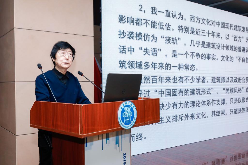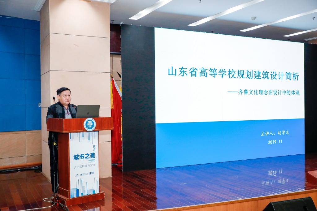 赵学义总建筑师做了题为《山东省高等学校规划建筑设计回顾——齐鲁文化理念在设计中的体现》演讲,承接了上午程泰宁院士关于文化自觉的主题,从齐鲁文化入手,分别描绘了齐文化与鲁文化的特点,并以蓬莱阁、孔府为例分析了其在古都城建设中的体现。之后他详细讲述了山东建筑大学、山东曲阜大学日照校区、山东大学青岛校区、山东工会管理干部学院等院校的规划设计过程,与大家一起探讨了各个方案的优缺点,并进一步引出设计与文化的相互关系。