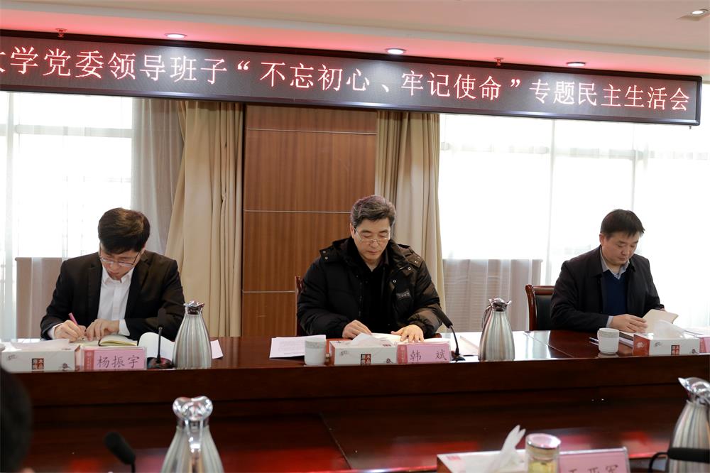 最后,王亚军代表学校党委领导班子作表态发言。表示,下一步,要以此次专题民主生活会为新起点,坚决贯彻落实中央、省委重大决策部署,落实省委和省委指导组提出的要求,持续抓好检视问题整改,自觉接受师生监督,重点在5个方面加强学校党委领导班子自身建设:一是坚持理论武装不放松,不断筑牢守初心、担使命的思想根基;二是坚持政治建设不放松,不断强化守初心、担使命的政治定力;三是坚持践行使命不放松,推动形成守初心、担使命的干事创业氛围;四是坚持为师生服务不放松,不断厚植守初心、担使命的群众基础;五是坚持律己修身不放松,积极营造守初心、担使命的良好政治生态。(党委办公室)