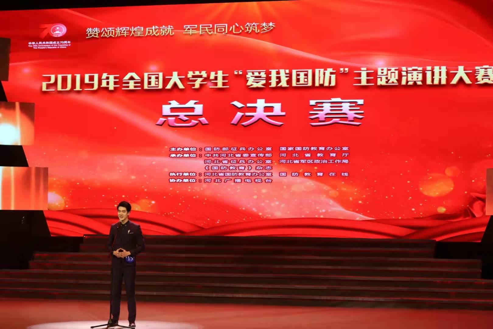 12月10日,由国家国防教育办公室主办,河北省委宣传部、省教育厅、河北省征兵办公室、省军区政治工作局、《国防教育》杂志承办,河北省国防教育办公室和国防教育在线共同执行的2019年“爱我国防”全国大学生主题演讲比赛总决赛在河北石家庄举行。伟德官网环境与市政工程学院学生高原代表山东省参加了比赛,获得了全国总决赛二等奖。
