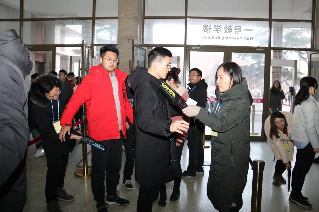 今年共有1705名考生在伟德国际1946bv官网参加考试,考生数比去年增幅33.1%。在一号教学楼和建筑馆共集中安排57个考场,参与承担监考、考务、保障等工作的人员200余人。根据山东省教育招生考试院统一部署要求,考点现场,考生入场时采用人脸识别自动身份验证系统,并增加了人工“二次安检”,严禁携带手机等通信工具入场。为妥善保管考生个人物品,工作人员在存包处还为考生提供了存包牌。