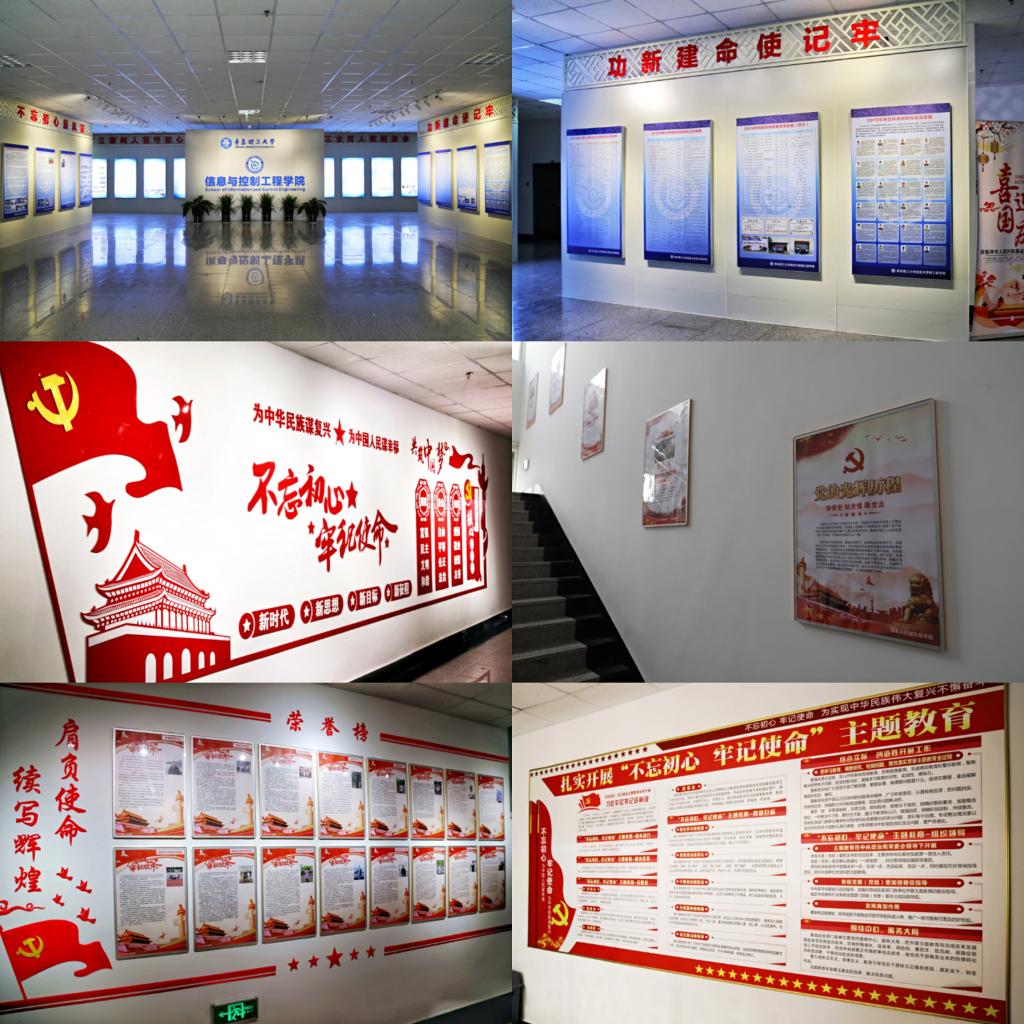 为增强学院文化氛围,发挥信控大楼文化育人功效,学院以“不忘初心、牢记使命”为契机,以党建为引领,从文化建设入口,大力营造特色信控文化。设计了党建引领、坚定信念主题;院情院史、学院标识主题;榜样标杆、典型示范主题;科技竞赛、成果展示主题;学科发展、专业教育主题;名人警句、传统文化主题,鼎新书院、公寓文化主题。营造一种处处是文化,时时见文化,人人有文化的氛围,通过潜移默化的文化宣传达到润物细无声的育人效果,使学生在思想、学业,特别是在弘扬社会主义核心价值观方面得到提升,充分发挥文化资源的育人价值。