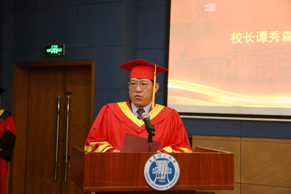 校长谭秀森发表热情洋溢的讲话。他首先向取得学位的531名博士、硕士研究生表示最热烈的祝贺!充分肯定同学们在科学研究、学科竞赛、重大工程建设及推动学校发展中所做的贡献。谭秀森指出,学校综合改革稳步推进,新校区建设快速推进,办学条件逐步改善,内涵建设成效显著,在国家及省一流专业建设、全职引进长江学者特聘教授团队等高层次人才队伍建设等方面取得显著成就。
