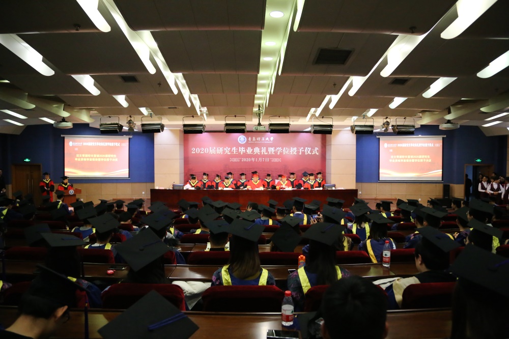 毕业典礼在全体人员起立奏唱庄严的国歌声中拉开序幕。沈文青宣读2020届研究生毕业资格审查报告暨学位授予决议,导师代表郭峰教授,毕业生代表王文同学在典礼上发言。