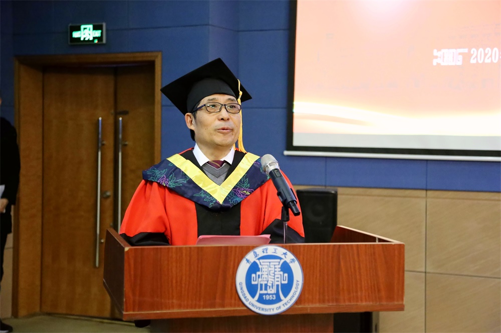机械与汽车工程学院院长、泰山学者郭峰教授作为教师代表发言。他深情回顾了同学们在理工大学求学的点点滴滴,并为即将踏入社会的同学们提出殷切希望,愿同学们做一个有责任心、尽本分的人,勇于进取的人,心怀感恩的人,带着母校的殷殷期盼和美好祝福,在充满无限可能的未来,实现报效祖国的理想,创造属于人生的辉煌成就。期待同学们在生活和事业上捷报频传,也欢迎同学们经常回家看看。