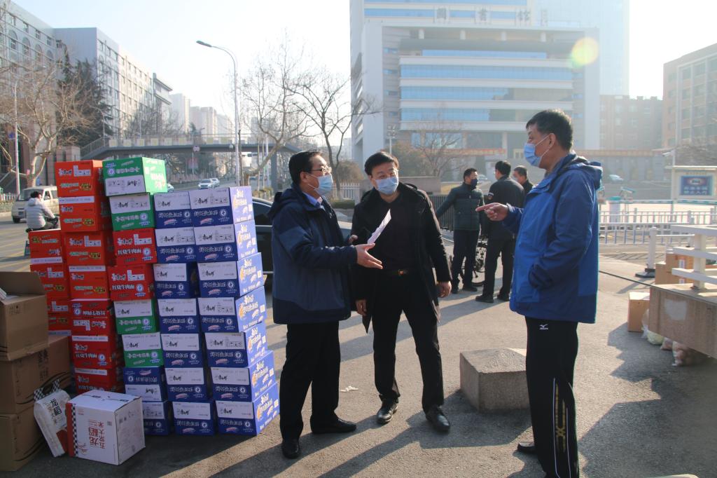 为贯彻落实学校党委关于防控工作的总体部署,更好地发挥工会组织在疫情防控工作中的作用,2月10日上午,党委副书记杨兴昌、工会主席周忠学代表学校向防控办、保卫处、黄岛校区指挥部等防控一线送去了生活物资。