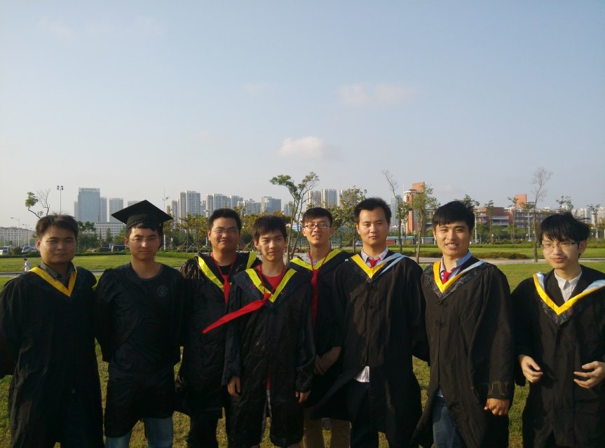 郭响军(右三)与同学毕业照
