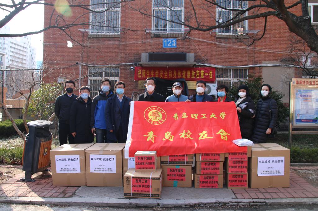 家国有难,前方有白衣战士逆行,后方有亿万爱心驰援。在得知母校战“疫”物资短缺的困境后,青岛校友会开始自发组织捐款、采购等工作。2月26日下午,青岛校友会向母校捐赠一次性医用外科口罩、防护服、免洗消毒液、一次性PVC手套等第二批防护物资,支援母校抗击疫情。校党委常委、副校长、防控工作领导小组办公室主任齐德义代表学校接受捐赠,并向校友们介绍了学校当前疫情防控工作情况。