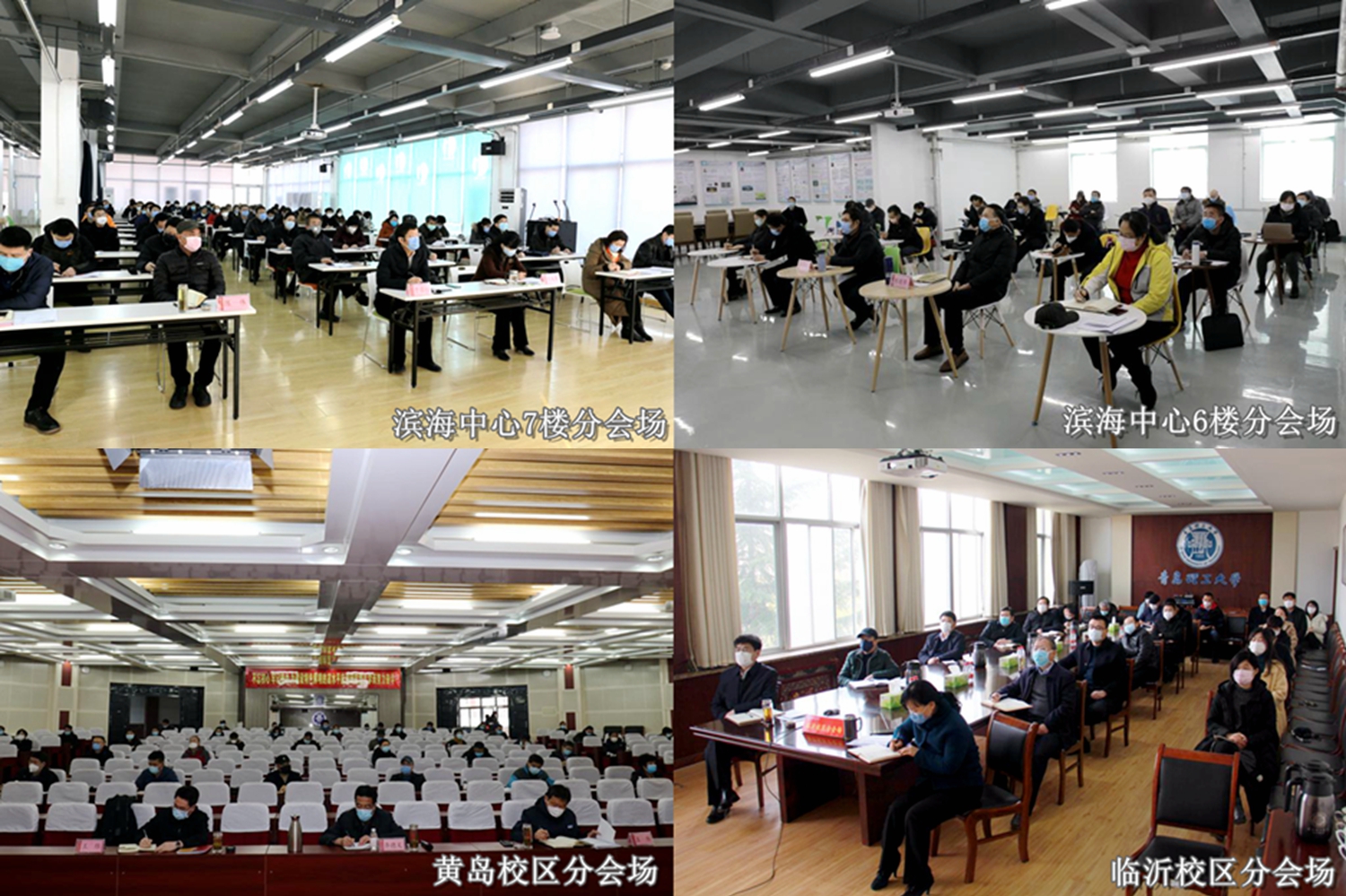 3月2日上午,学校召开统筹做好新冠肺炎疫情防控和完成全年各项目标任务工作部署会议,总结学校2019年工作,安排部署统筹新冠肺炎疫情防控和2020年学校事业发展工作。校党委书记王亚军,校党委副书记、校长谭秀森,校党委副书记李国华、杨兴昌,副校长赵铁军,校党委常委、纪委书记、监察专员尹东峰在市北校区1908会议室主会场出席会议;校党委常委、副校长于德湖、王在泉、沈文青,校党委常委、宣传部长陈伟、组织部长郭建锋分别在市北校区滨海人居环境创新中心六楼、七楼分会场出席会议;校党委常委、副校长齐德义、王伟,校党委常委、统战部长王维在嘉陵江路校区教学楼西报告厅分会场出席会议。校学术委员会主任王燕教授、全体处级干部、临沂校区部分同志通过视频会议形式分别在5个会场参加会议。