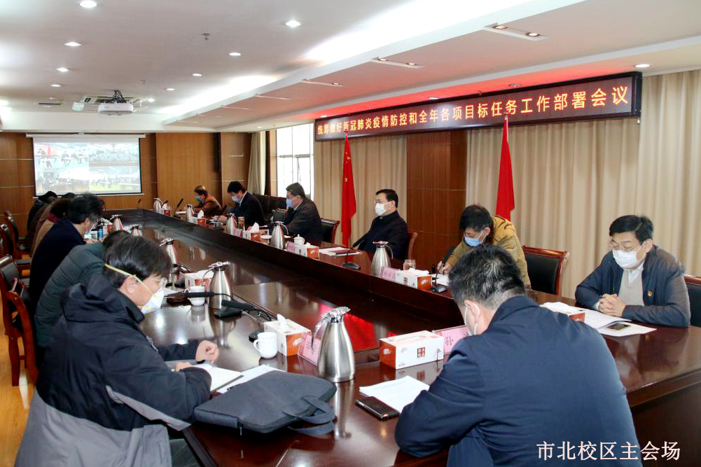 就统筹做好疫情防控工作和完成全年目标任务,王亚军强调:第一,要认清面临的形势,明晰任务与责任,做到胸中有数、心里透亮、干有奔头。就疫情防控工作,从全国来看,目前疫情防控形势积极向好的态势正在拓展,防控工作取得了阶段性成效。但当前疫情形势依然严峻复杂,防控正处在最吃劲的关键阶段,真正的大仗、硬仗,检验前期战场准备是否到位的接触战还未打响,还没真正接上火,必须高度警惕麻痹思想、厌战情绪、侥幸心理、松劲心态,毫不放松抓紧抓实抓细各项防控工作,珍惜学生返校上课前这个最后的准备期,真正把教职员工当自己的亲人、把学生当自己的孩子,抓紧堵漏洞补短板,必须尽到责任之极、尽到最大努力之极。就学校2020年全年面临的工作形势与任务而言,刚才秀森同志作了说明、解读和部署。概括起来就是工作任务重、要求严、时间紧、标准高、多叠加,必须搞清作战态势,抓细抓实抓开工,把学校事业发展和教职员工切身利益时刻放在心上,要紧着气、咬着牙继续做大量艰苦细致工作,要弹好钢琴、不顾此失彼,一手抓防疫一手抓开工,两手抓两手硬、两促进两不误、两副重担一肩挑!要把落实体现在统筹上、统筹体现到落实上,用考核来抄底,完成主校区转移和持之以恒加强内涵建设实现高质量发展两大任务。第二,要加强组织领导,狠抓工作落实。今年学校主校区战略转移和实现高质量发展两大任务相互叠加,加之这次疫情影响,做好各项工作难度更大,要沉下心来、扑下身子,坚持问题导向,把工作落到实处,确保完成全年各项目标任务。要全面加强党的领导、全面落实“党政同责、一岗双责”,学校各级党组织要坚决扛牢统筹疫情防控和完成全年各项目标任务的政治责任,各级党员领导干部要冲在一线,切实负起责任,让党旗在学校疫情防控斗争和事业发展的第一线高高飘扬,用抓实抓细抓落地的实际行动践行初心和使命。要以这次疫情防控为契机,充分做好特殊时期的有针对性和实效性的思政工作、开好思政课。要深入一线了解考察识别干部,把真实情况掌握起来、应用起来。同时在严峻的斗争中要注意进一步关心爱护我们的干部和教师。秀森同志刚才总结了2019年工作的成绩,成绩的取得是大家真抓实干拼出来的,我们学校的干部队伍、教师队伍总体上是好的,是能打硬仗的,是有骨头的!我们对此充满信心!