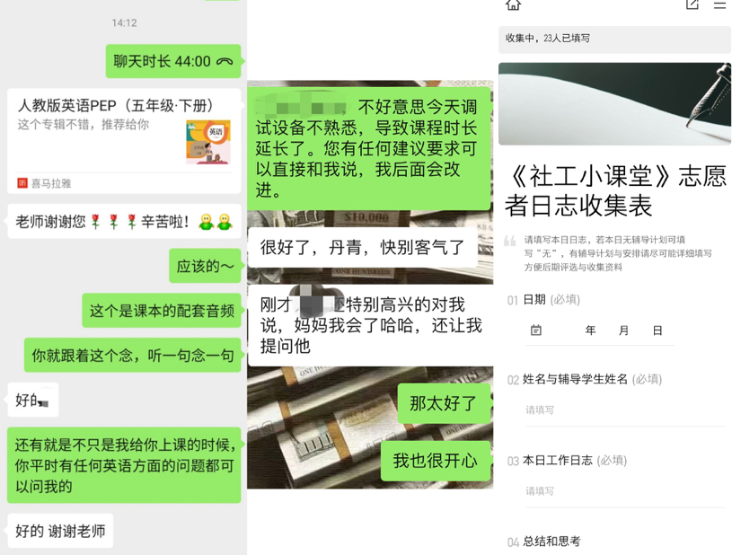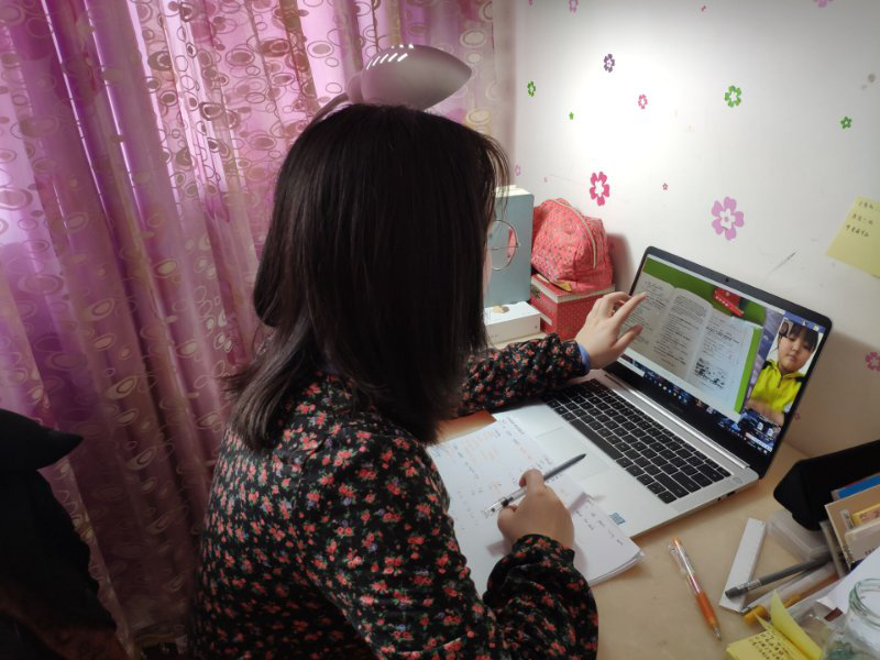 志愿者线上辅导学生的课堂作业