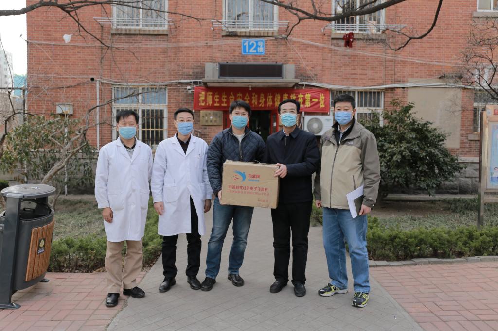 3月16日下午,山东瑞进医疗科技有限公司总经理王玺来校,向学校捐赠了一批红外线测温仪。党委常委、副校长齐德义代表学校接受捐赠并表示感谢,后勤管理处处长金玉谟及校医院负责人参加捐赠活动。