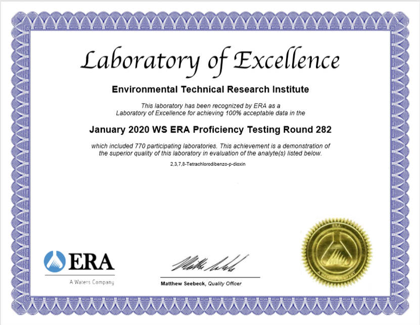 近日在美国环境资源协会(简称ERA)组织的第282轮国际检测能力验证中,光大青岛理工环境技术研究院从同期参加比对的770家实验室中脱颖而出,获得“卓越实验室”(Laboratory of Excellence)称号。这标志着光大青岛理工环境技术研究院相关检测能力达到国际水平,获得了国际权威机构认可。