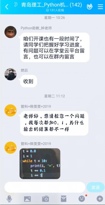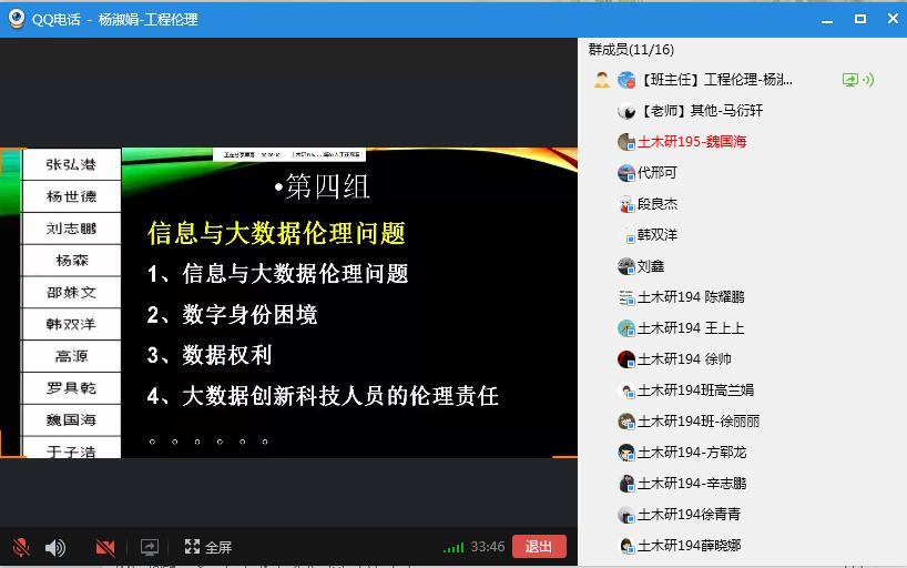 学习过程互动。线上教学过程贯穿出勤签到、课程学习、研讨互动、布置作业等环节,教师能够及时掌握研究生的学习情况。师生通过QQ群留言、投屏弹幕等方式,实现在线交流互动、答惑解疑等。