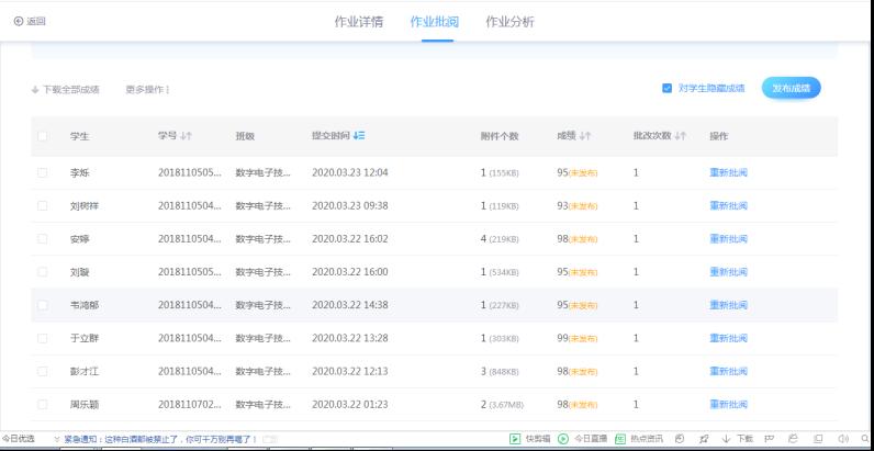 课后反馈环节对于线上教学来说显得十分重要,既是直播课堂的延伸和补充,也是教师了解和掌握学生学习情况,进一步改进自己教学过程的依据。在智慧树翻转课堂布置课后作业,要求学生在期限内以拍照或电子文档的形式提交。通过对学生作业的批阅,并利用平台上的数据分析,可及时了解学生对课程的掌握情况和监测学生任务完成情况,为后续的教学提供参考。对作业出错的环节,及时将错误的原因和解题思路反馈给学生们,使学生对此知识点的认识会更为深刻。作业的标准答案会在QQ课程群以拍照的形式在作业批阅结束后发送,让学生掌握作业中每一道题目的标准解题步骤。同时,学生也能在智慧树平台上看到作业的评语,知道自己本次作业的完成情况。