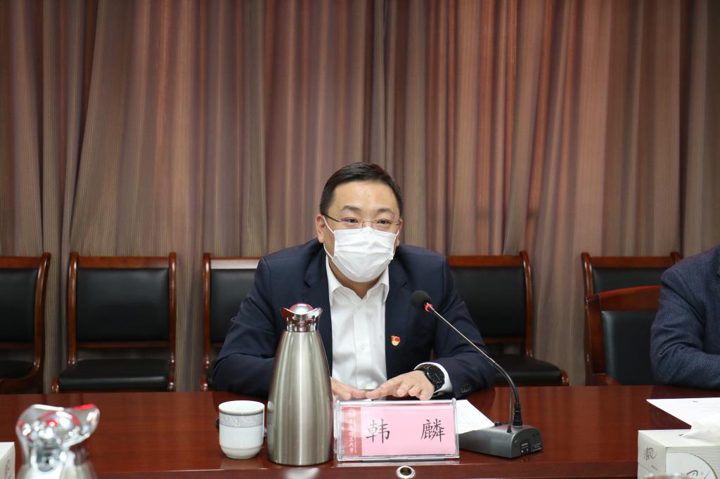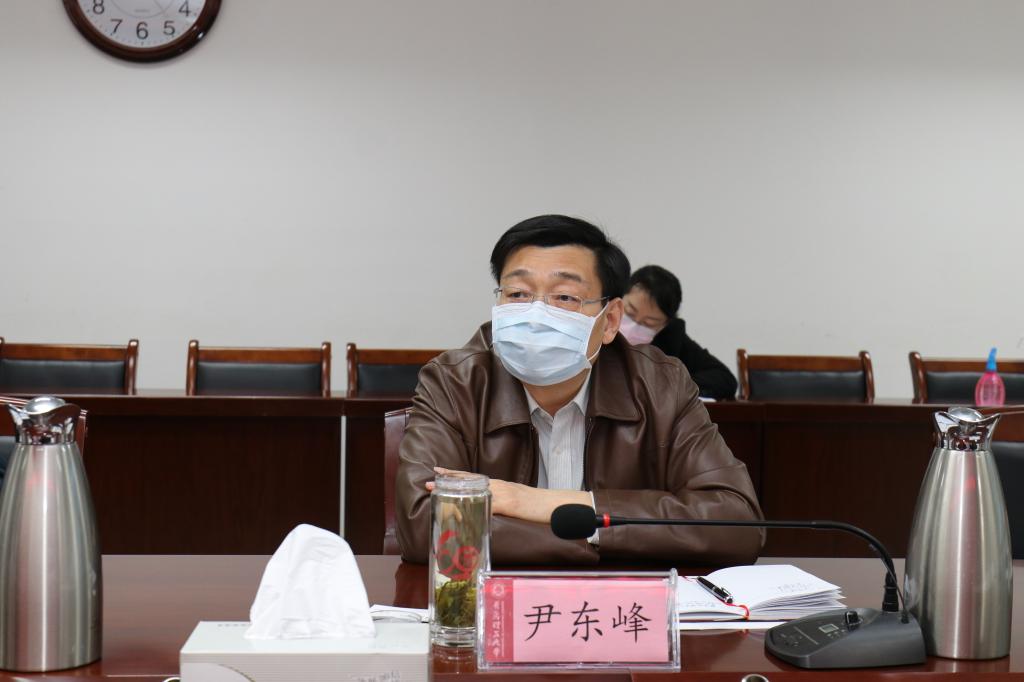 尹东峰对韩麟总经理、王峰书记一行的到来再次表示欢迎,对区供电公司对学校建设发展的大力支持表示感谢,代表学校省派“四进”攻坚工作组对市北区四个联系单位青岛渤海农业发展有限公司、智能化超级口罩工厂及测试实验室、辽宁路街道贮水山社区、镇江路街道海泊河社区的疫情防控和复工复产等有关情况进行了简要介绍。他指出,今年学校要实现主校区转移目标,新校区二期建设的如期投入使用是关键点,在统筹推进落实学校重点工作与疫情防控工作过程中面临着时间紧、任务重的情况,希望区供电公司与学校密切交流,加强沟通,为学校实现高质量发展继续提供强有力的用电保障。