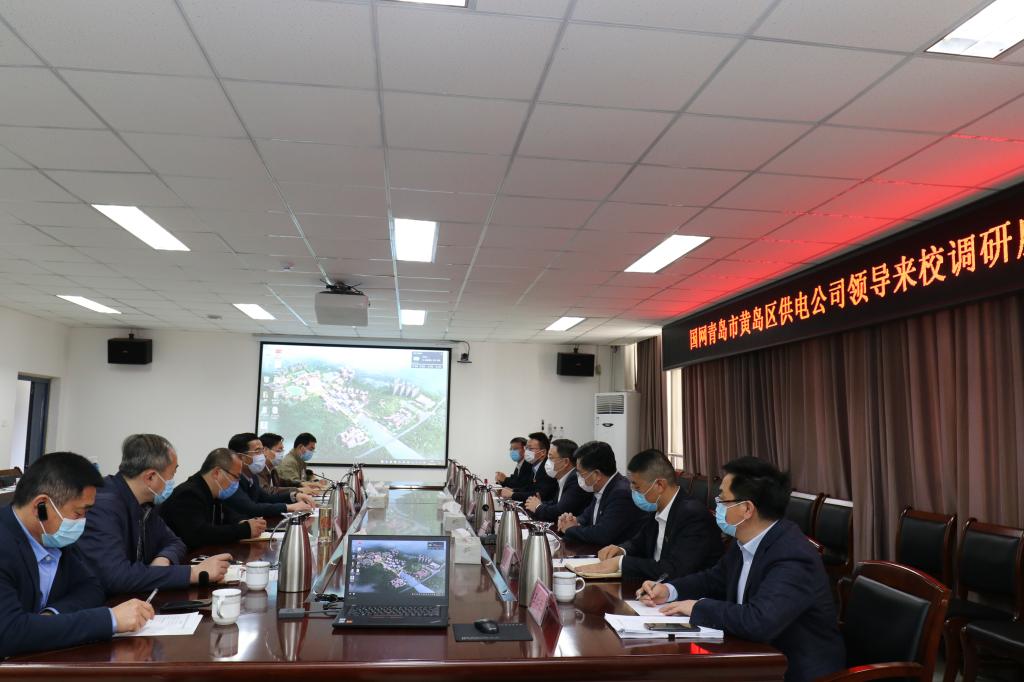 4月20日下午,国网青岛市黄岛区供电公司总经理韩麟、党委书记王峰一行来嘉陵江路校区开展“同舟度时艰、四进送服务”走访调研,与省派伟德国际1946bv官网“四进”工作攻坚组交流“四进”攻坚工作。党委常委、副校长齐德义主持座谈会,党委常委、纪委书记、监察专员、省派“四进”工作攻坚组组长尹东峰出席会议,国网黄岛区供电公司办公室、建设部、营销部负责同志,以及学校黄岛校区管理办公室、基本建设处、后勤管理处等相关部门有关同志参加座谈。