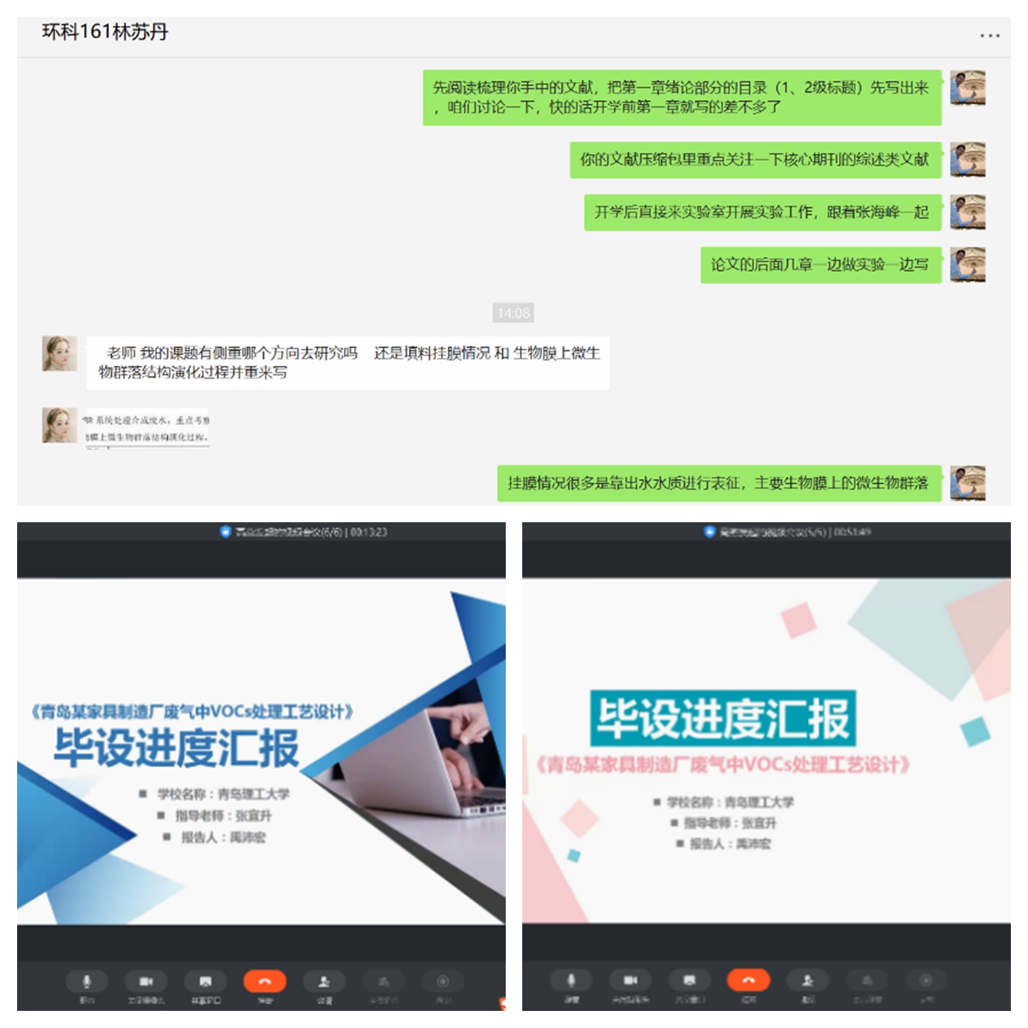 为确保每位同学保质保量完成毕业设计(论文),指导老师通过QQ群进行集中指导。结合毕业设计(论文)选题,利用微信开展一对一辅导,特别是针对学生返校之前无法开展实验等问题,在现阶段辅导过程中着重强调文献查阅和梳理,在开学前完成绪论和实验方案初步设计,确保毕业设计(论文)如期提交。