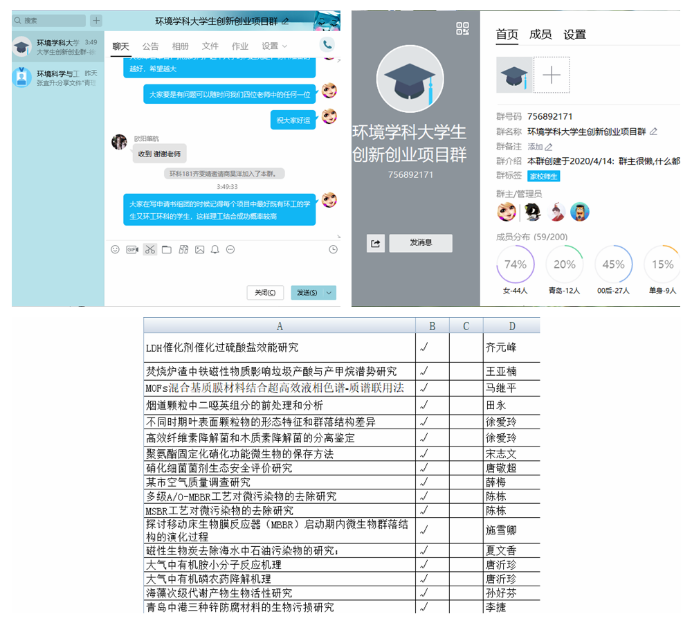 国家级大学生创新创业训练计划在增强高校学生的创新能力和在创新基础上的创业能力方面发挥着重要作用。为提高2020年国创项目申报质量,环境学科团队提前谋划,强化导师队伍建设,对参与学生实行导师负责制,鼓励校内教师担任大学生创新创业训练计划的导师,积极聘请企业导师指导学生创业训练和实践。向本专业同学介绍往届学生参赛和获奖情况,介绍专业教师的研究方向和学院科研平台,引导同学根据兴趣主动与相关方向的老师进行联系。教师授课过程中会围绕科研课题,或某些热点问题,如利用生物学知识解决环境问题、当前水污染控制的新技术、新工艺以及研究热点、污染源普查方法等,并穿插讲解前沿的中英文文献,引导学生深入思考科学问题,为后续申报相关创新创业训练计划项目和参加“挑战杯”大学生课外学术科技作品竞赛等做准备。学科还针对大二、大三学生搭建项目在线交流平台,定期开展交流活动。(撰稿:张宜升、徐爱玲、李伟, 审核:李金成、田艳兵)