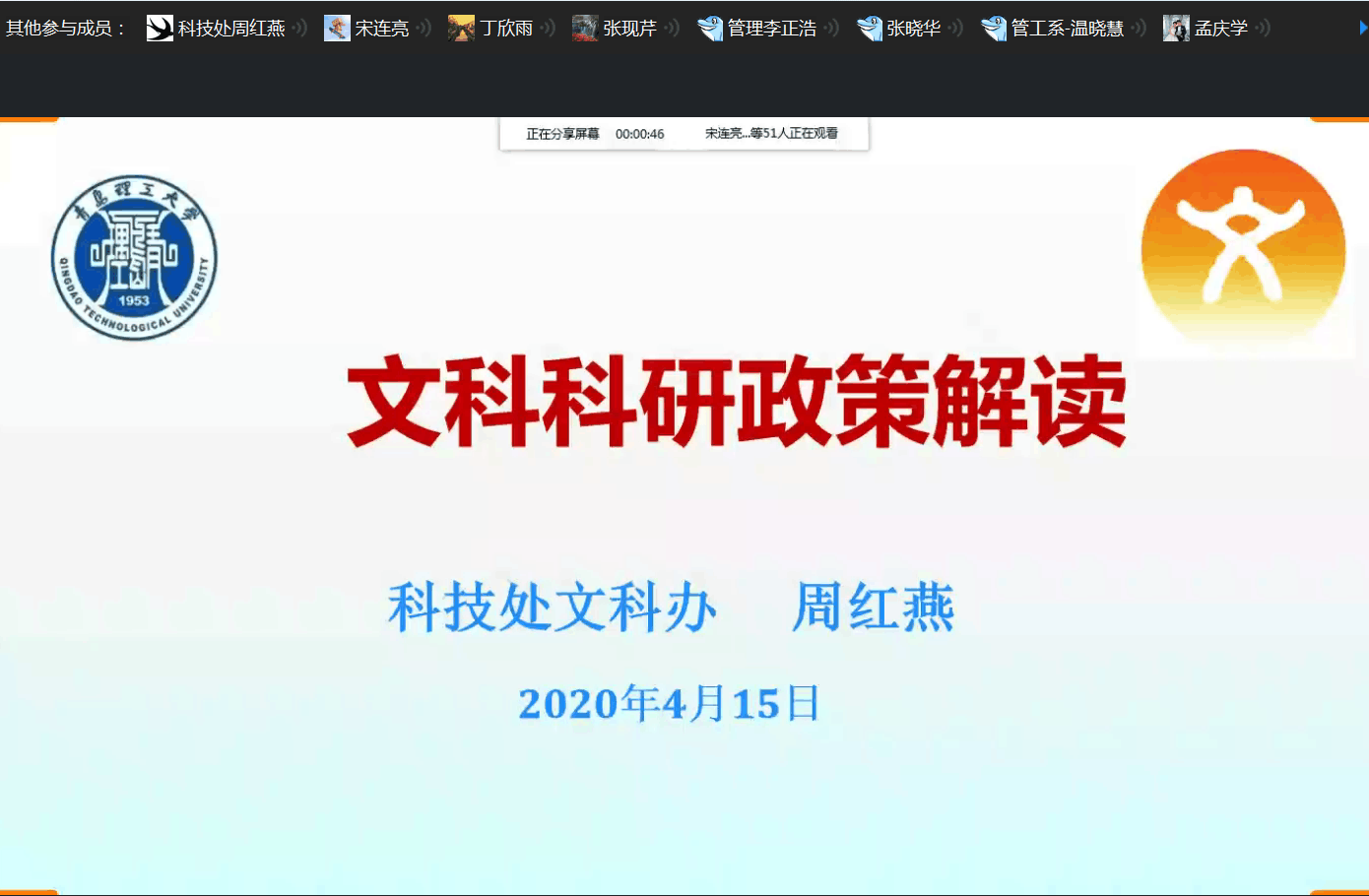 创新推出“科技云讲堂”活动。针对疫情期间的特殊形势,科技处创新推出“科技云讲堂”活动,面向理工类、人文社科类科研教师,专门录制了4个视频文件,对二级学院考核指标、科研经费管理办法政策进行细致深入的解读,通过QQ群、微信群云端分享,下发到每一个教师手中,切实将好的科研政策及时送到科研教师手中。按照工作计划安排,下一步科技处还将陆续推出科技成果转化政策专题解读、横向业务专题介绍等“科技云讲堂”主题辅导活动,确保政策解读宣讲全员覆盖。