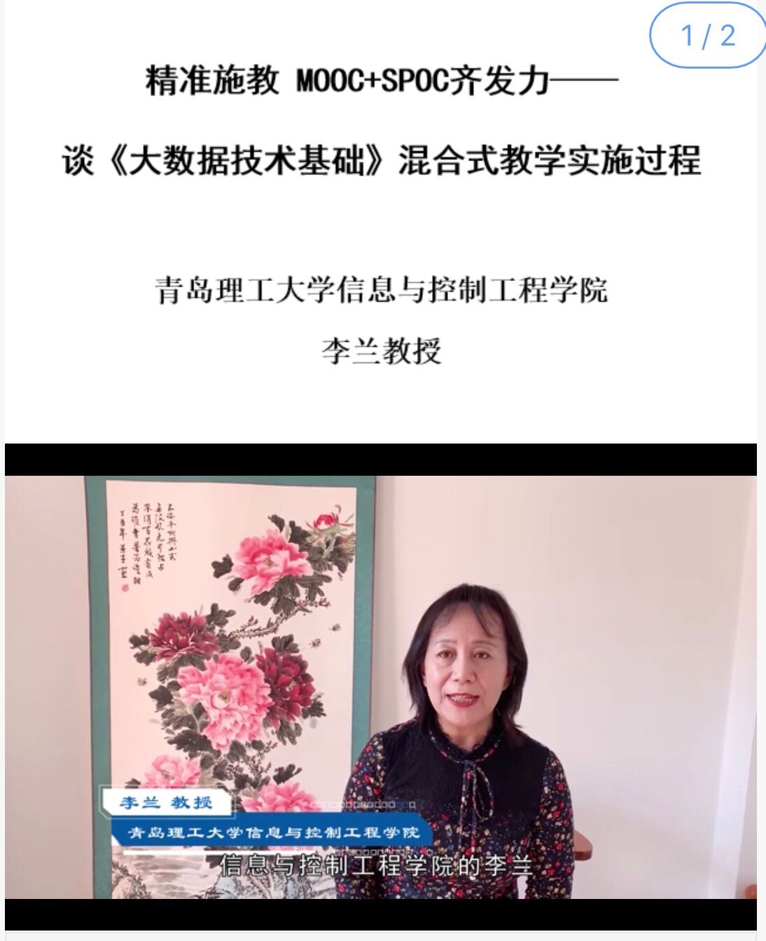 近日,伟德官网信息与控制工程学院李兰教授讲授的研究生公共课《大数据技术基础》代表入选中国学位与研究生教育学会举办的“在线公益讲座”。以“‘精准施教, MOOC+SPOC 齐发力’——谈《大数据技术基础》线上线下混合式教学实施过程”为题通过视频的形式面向全国汇报了自己在线教学的经验做法和体会。