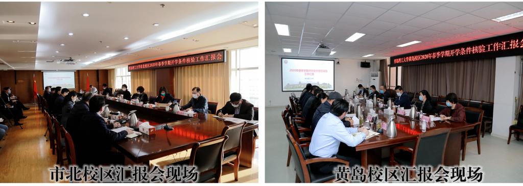 5月11日-12日,由市教育局总督学李岷、尹明琴带队,市教育局、市卫生健康委、市市场监管局有关部门负责同志联合组成的第二、第四核验工作组分别对伟德官网市北校区、黄岛校区进行开学条件核验。西海岸新区疫情防控驻校工作组,校党委书记王亚军,校党委副书记、校长谭秀森和校疫情处置办公室、各专项工作组组长、有关成员参加核验。