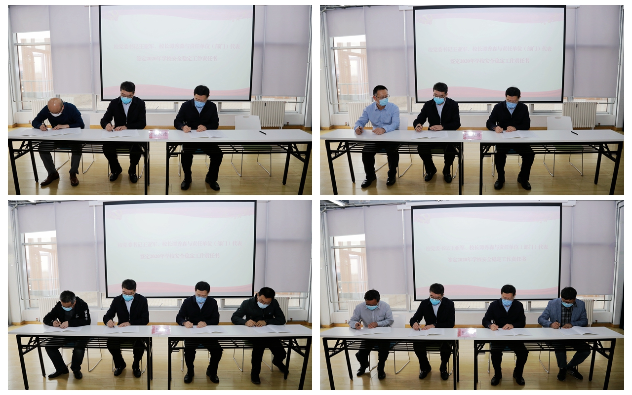 王亚军、谭秀森与责任单位(部门)签定2020年学校安全稳定工作责任书。