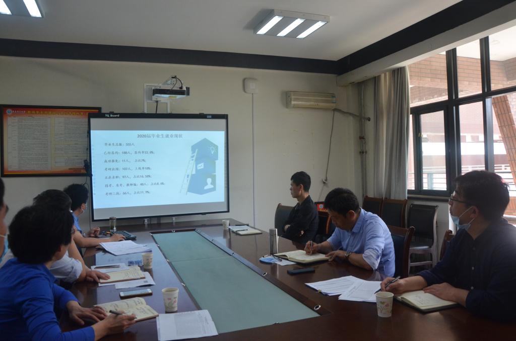 于利俊详细汇报了2020届毕业生就业工作进展情况及举措,通过各个专业目标签约率和实际签约率的对比分析,确定了下一步就业工作思路。学院将“化整为零、网络推进、齐抓共管、责任到人”,积极推进学院第二阶段就业工作,全面启动网格化就业推进工程,全员参与,形成合力,共同推进就业工作下沉基层,直接服务学生,切实解决学生在就业工作遇到的困难,以高度的责任感、使命感做好就业工作。