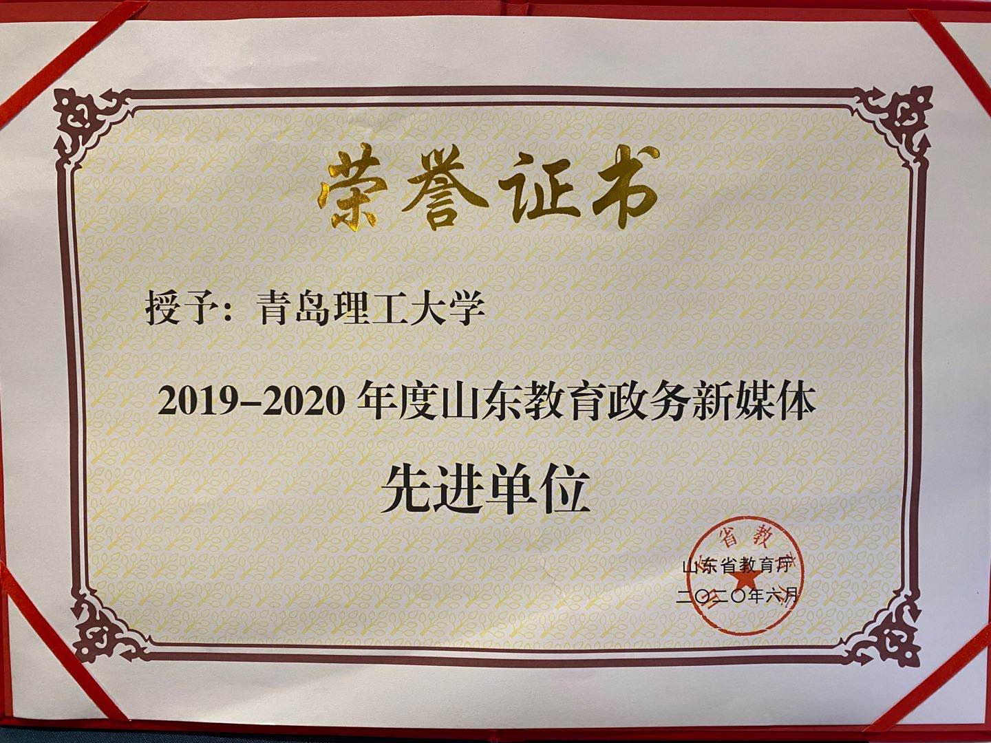 6月19日—20日,“2020年山东教育政务新媒体联盟年会”在青岛举行。伟德官网被省教育厅授予“2019-2020年度山东教育政务新媒体先进单位”荣誉称号。