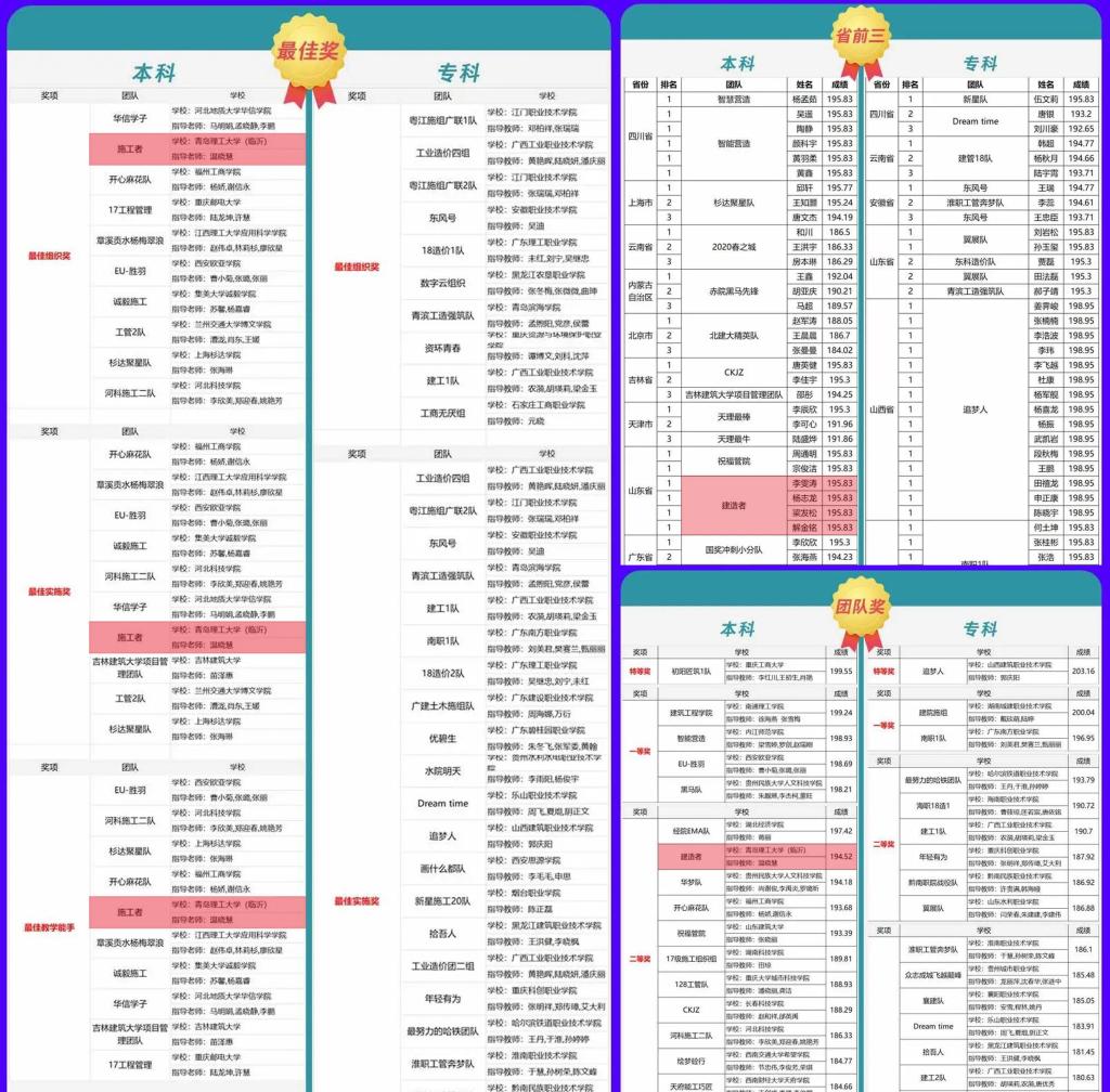 赛前管理工程系认真谋划,层层选拔,组织参赛学生赛前训练2000余人次,模拟试题近30套,练习训练总时长超3000分钟。在指导教师温晓慧悉心指导及参赛队员的共同努力下,校区选派的“建造者”团队获得本科组二等奖,“施工者”团队荣获最佳组织奖、最佳实施奖;管本171杨志龙,管本172梁发松,造本172李雯涛、解金铭等4名同学并列获得山东省个人成绩第一名;参赛的72名同学均获得权威机构颁发的GIAC认证二级熟手证书;温晓慧老师获“最佳教学能手奖”。