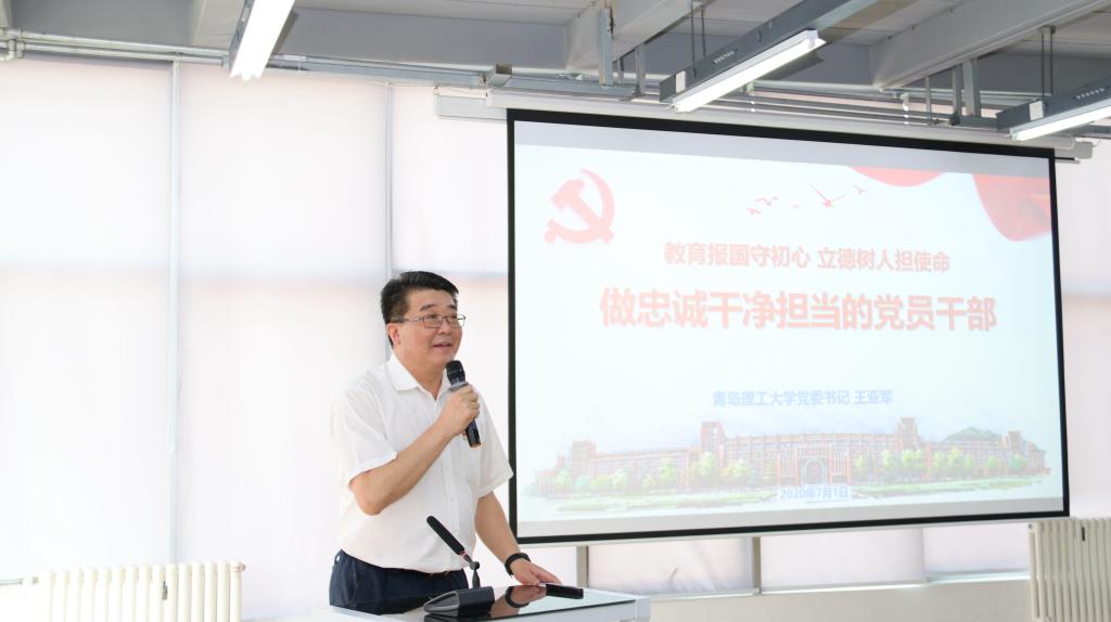 在中国共产党成立99周年之际,7月1日下午校党委书记王亚军同志到联系党支部——全省党建工作样板党支部、建筑与城乡规划学院城乡规划教工党支部参加庆祝建党99周年主题党日活动,并以《教育报国守初心、立德树人担使命,做忠诚干净担当的党员干部》为题,为党支部全体党员上了一堂专题党课,校党委办公室主任孙川三、学院班子成员参加专题党课。与会人员重温入党誓词,感悟初心使命,迎接党的99岁生日。主题党日活动由城乡规划教工党支部书记薛凯主持。