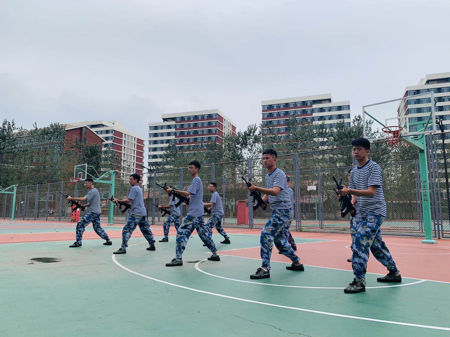 体育部专门提供了风雨操场场地,保证了恶劣天气下,训练进程不受影响。