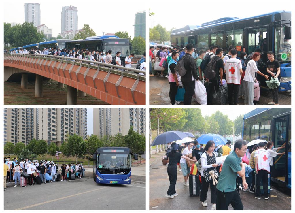 上午8时-10时,新生报到比较集中,出现运力不足情况,大量新生和志愿者在乘车点等候。王亚军一行一边安抚新生,一边亲自指挥调度,学校各级领导、各部门积极行动、紧密配合,迅速协调公交公司增派车辆、加大运力,并及时调整学生登车安排,确保将新生安全迅速的送达迎新报到现场。期间大雨突至,王亚军一行深入大巴车接送点,冒雨进行指挥协调,校领导、部门负责同志齐上阵,亲力亲为帮助新生拉行李、打雨伞,现场办公为一名不慎与志愿者走散的新生联系寻找行李,使大家登车热情雨中不减退;各学院领导、学生工作干部及学生志愿者密切配合,冒雨工作,细心服务每一位新生,实现了入住宿舍雨中不降速,雨中浓浓的真情渲染而成一幅美丽的画卷。