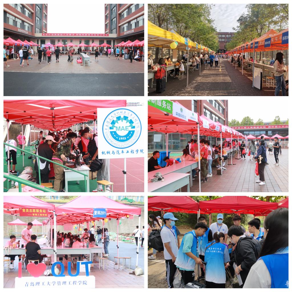 在迎新点,各学院党政领导、学生工作干部与同学们见面互动、了解情况。党员志愿服务站、新生签名墙、合影背景板、与食堂联合推出的免费“迎新面”、辅导员亲手制作的生日小蛋糕……精心准备的花式迎新活动,让新生们直呼“走心”又“暖心”:土木工程学院、机械与汽车工程学院专门设置了科技创新作品展示区,并安排专人进行讲解,培养专业学习兴趣。环境与市政工程学院的吉祥物“小环”“小境”热情引导新生报到、邀约新生合影并在签名墙上签下名字。在信息与控制工程学院,具备语音识别、一键导航、视频点播等功能的人工智能机器人“小信”亮相,与新生现场互动问答,介绍学院专业学科特色、科技创新成果,并可以点播相关宣传视频。理学院迎新志愿者们除了做好新生接待工作之余,还主动及时清理迎新现场的垃圾,保持良好的卫生环境。管理工程学院集结了辅导员、班主任、班助、学长学姐、志愿者在内的迎新大团队,为新生提供全程一对一服务,同时面向新生和家长进行线上线下宣传和沟通交流。商学院与食堂联合推出“迎新面”,每名新生都可以凭定制餐券,领取一碗热腾腾的“接风面”。人文与外国语学院定制的“朋友圈”合影板趣味十足,吸引了许多新生拍照,并与学长学姐志愿者们合影。